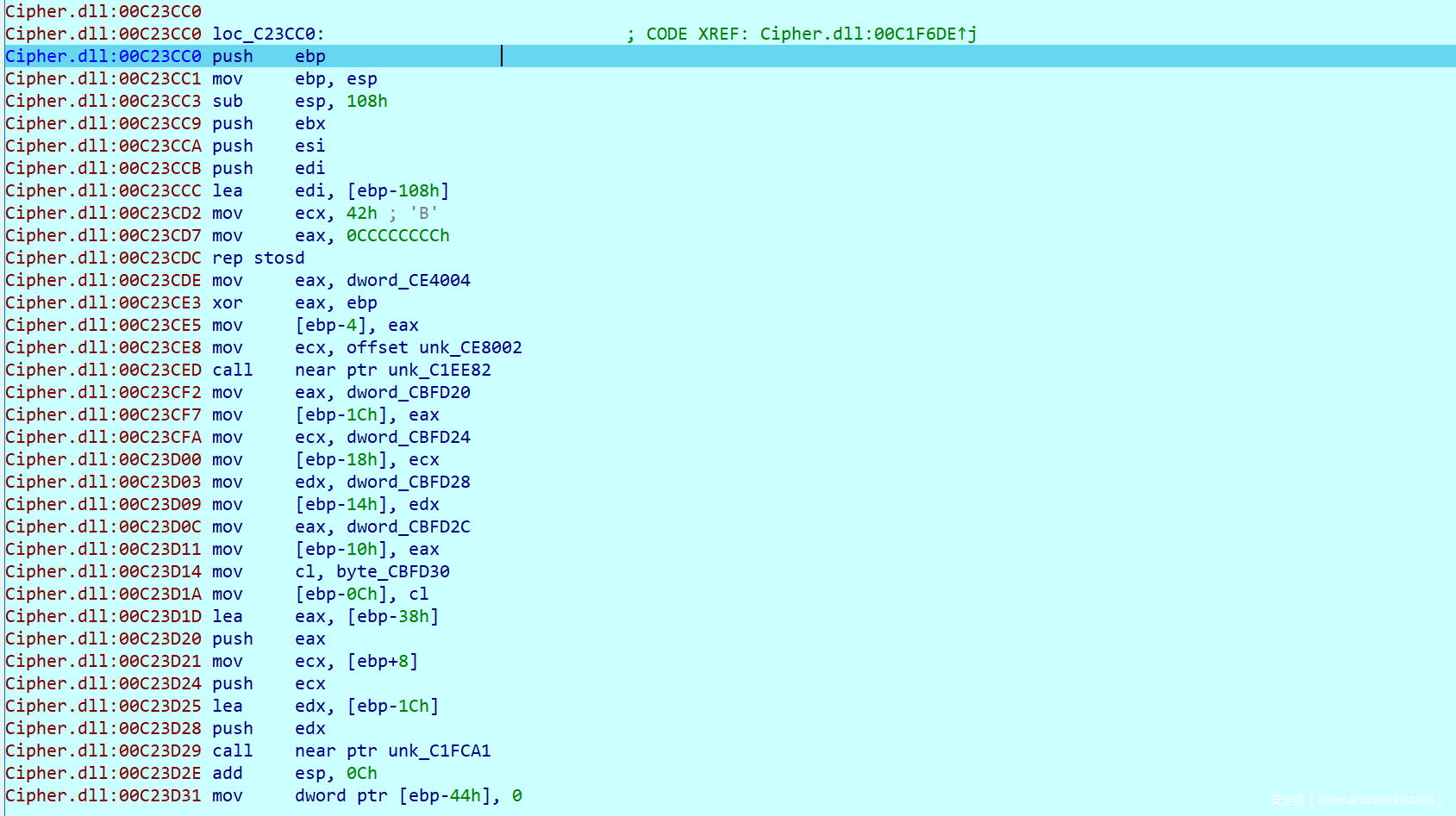 这个函数我显然不是很脸熟,但是我通过Findcrypt插件找到了他的关键
