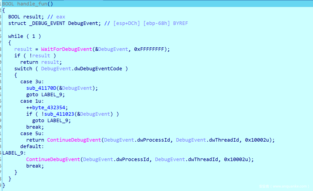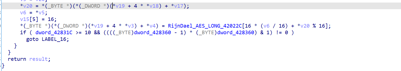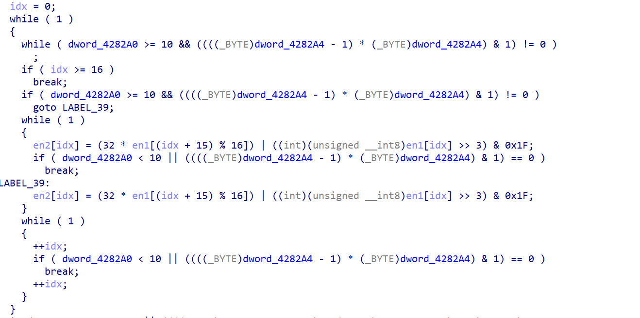 这里其实是一个for循环,直到idx == 16的时候结束,不过ida的伪代码识别成while循环了