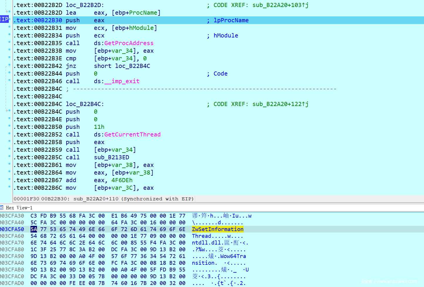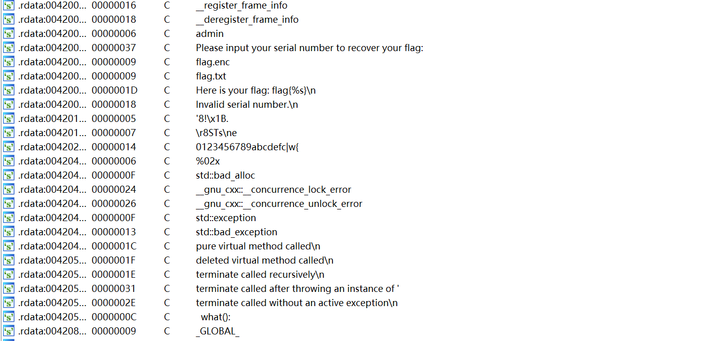 用IDA打开后,发现这道题的符号信息基本上都被清楚了,故尝试用字符串进行搜索