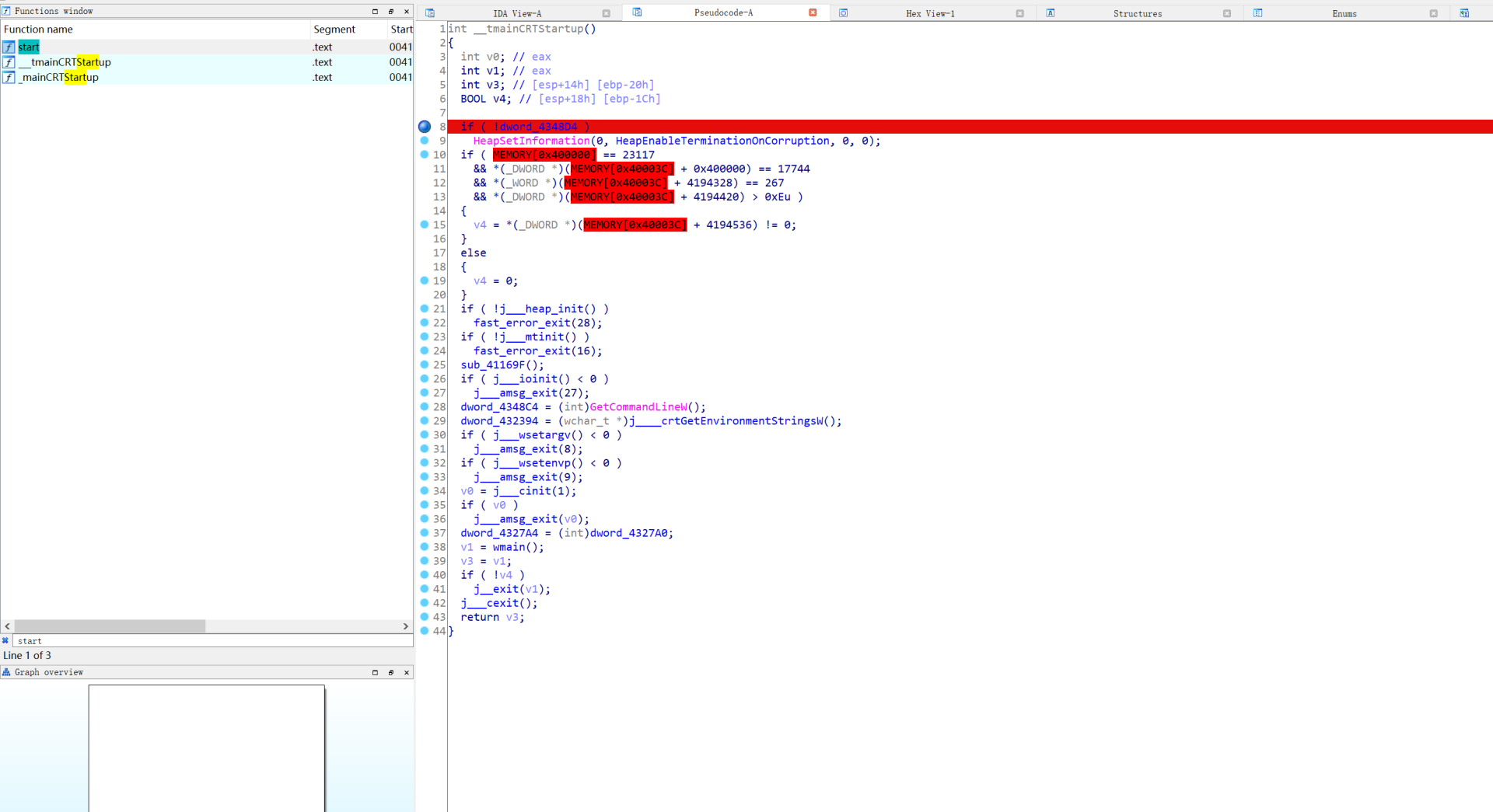虽然因为空间的原因覆盖了一行汇编代码,但是无所谓,我们这样修改只是为了伪代码能够识别出变量