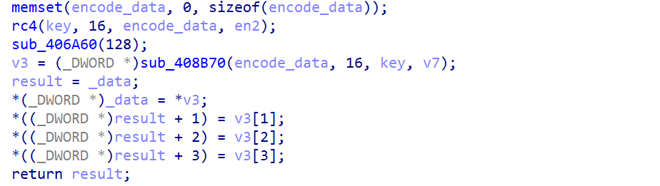 这部分的内容,所以我们大胆猜测这里其实就是AES加密,并且key的内容和rc4的key一致(正好两者要求也都是16位),v7也就是AES加密的iv。
