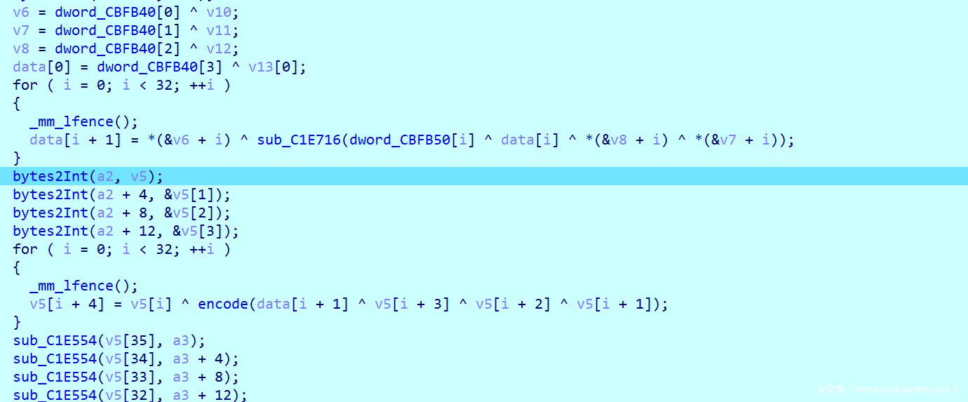 这里不知道为啥,明明只要比对32字节,数组却开到了36字节,并且计算过程也是循环了五次。