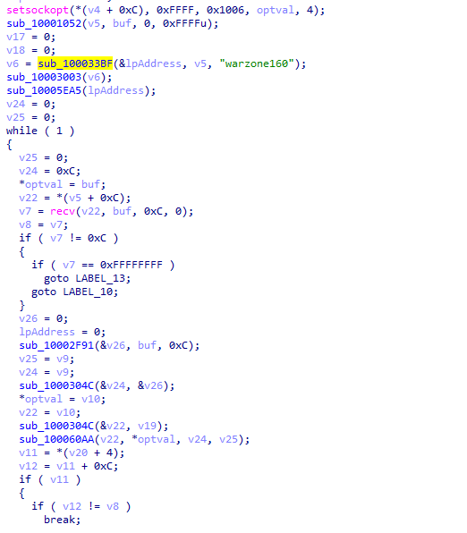 以密钥warzone160加密数据与C2通信,获取指令执行。