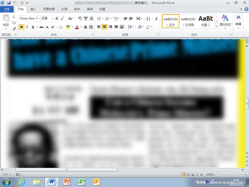 其中一个诱饵内容主题是报告的俄文样本,利用漏洞为CVE-2017-11882,不过文档打开后并没有什么吸引人的画面: