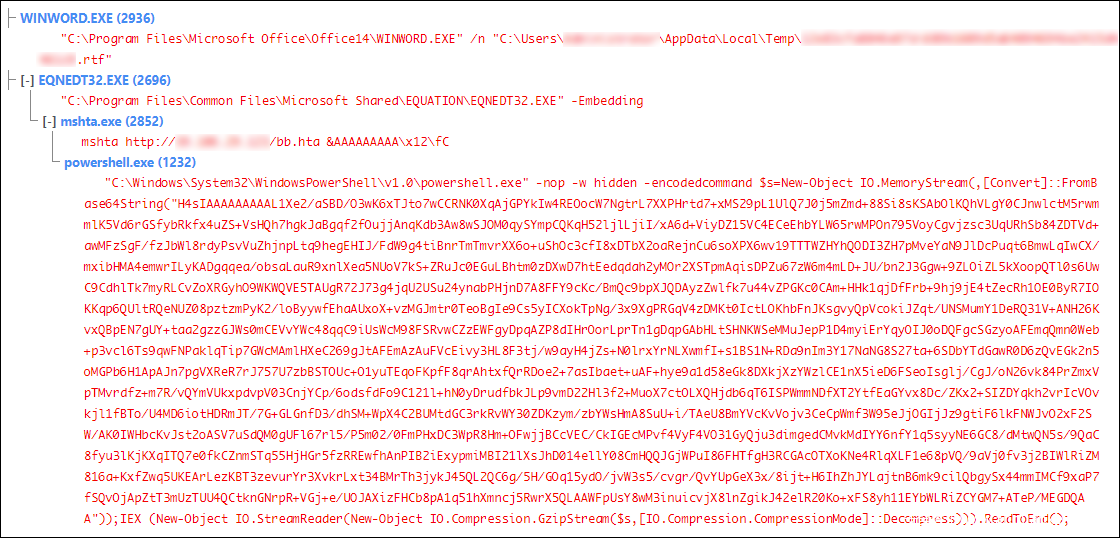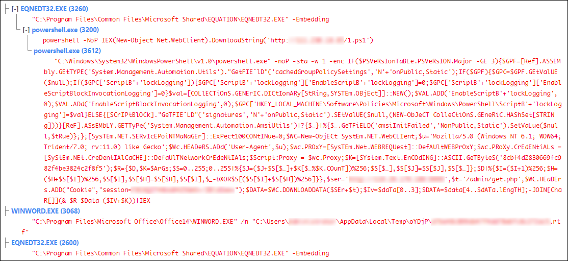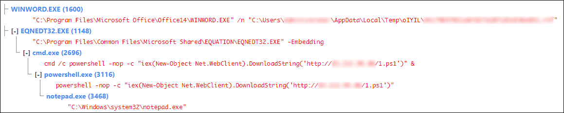 利用powershell去下载、启动远程文件也已经很常见了,现在已经开始有样本在尝试文件不落地。这里介绍2个我们捕获到的,攻击我国一些商业公司的样本。两个样本都只利用了CVE-2017-11882。