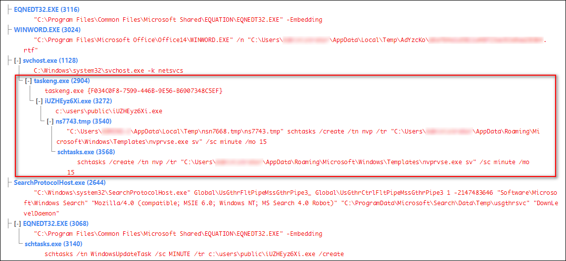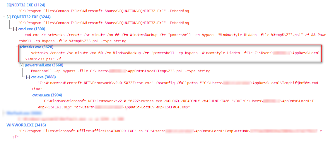 我们在2018年1月16日捕获2个利用计划任务执行代码的公式编辑器攻击样本。