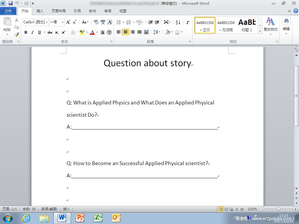 不过,在这个样本中,我们没有显式看到这对白利用被加载,但在其他的一些样本,如下面这个我们2017年12月22日捕获的样本中,我们观察到了类似的白利用被加载(spoolsv.exe+vsodscpl.dll)。该样本利用了CVE-2017-11882,主题为面向应用物理学家的调查问卷,打开后界面如下: