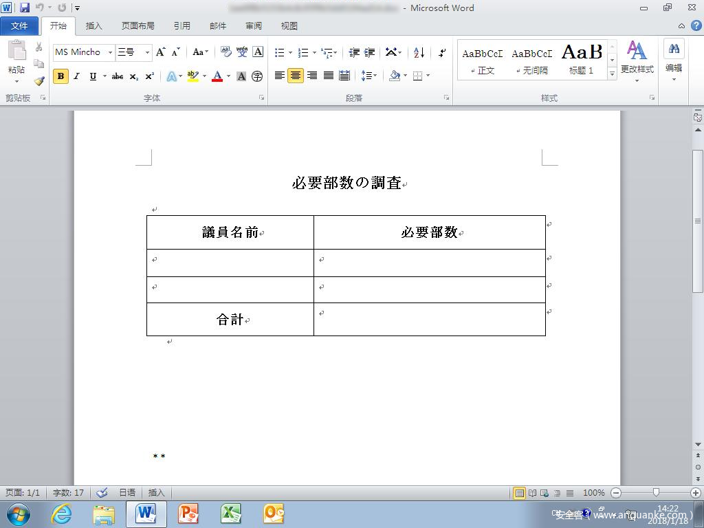 我们的平台于2018年1月18日捕获一个日文诱饵内容的样本,该样本同时利用了CVE-2017-11882和CVE-2018-0802漏洞。样本标题为“必要部数的调查”,打开后界面如下: