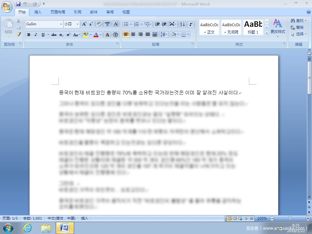 2018年1月22日,我们又捕获2个诱饵内容包含比特币主题的韩文漏洞文档,诱饵及payload完全相同,但分别独立利用CVE-2017-11882和CVE-2018-0802漏洞进行攻击: