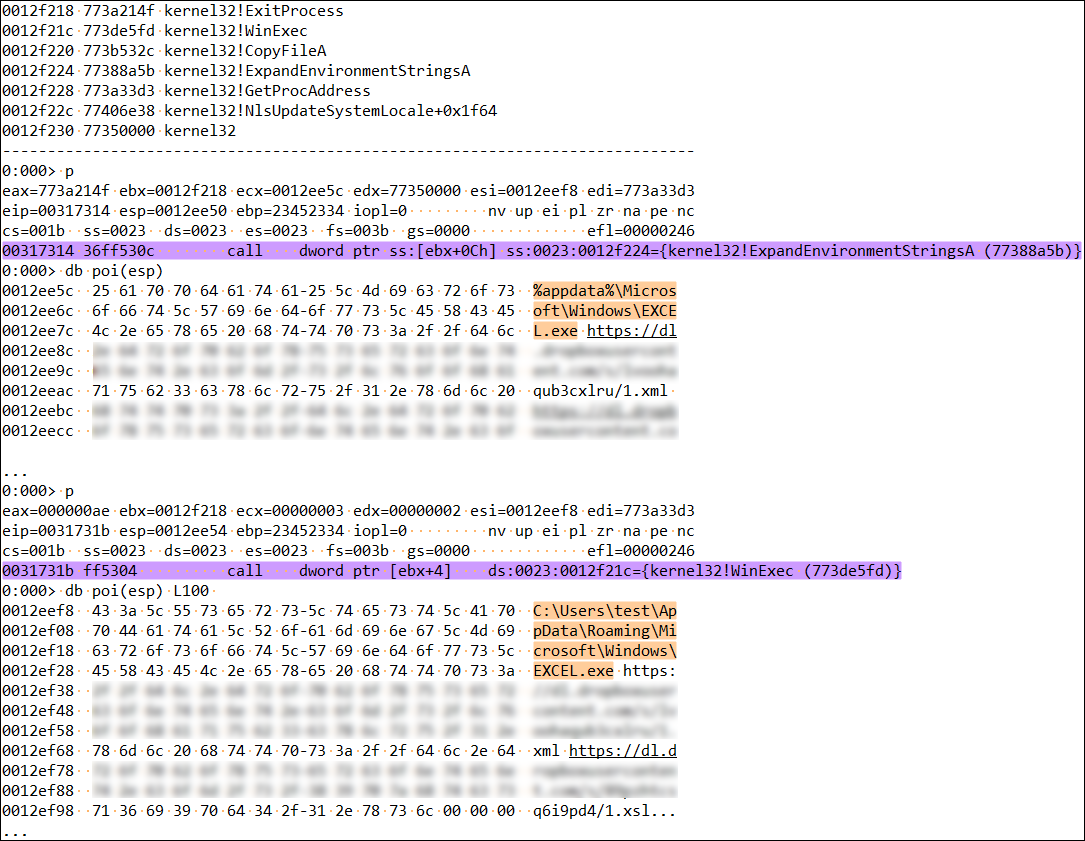 然后展开短路径,接着启动EXCEL.exe进程并传入参数,启动进程后马上退出公式编辑器进程。