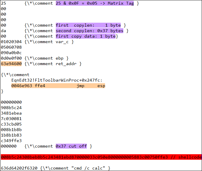 在观察到的形形色色的利用公式编辑器进行攻击的样本中,我们还观察到一些高级技巧,在这里我们也一并总结一下。