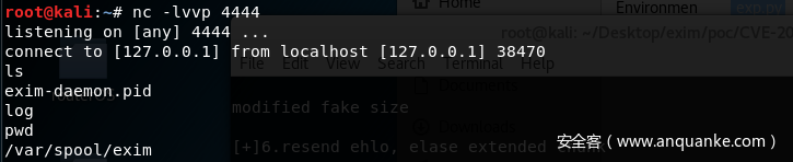 这里需要说明的是反弹的shell不是root权限,而是用户exim权限。