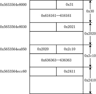 占用第二个0x2020字节大小的chunk:0x5653564ecc70。