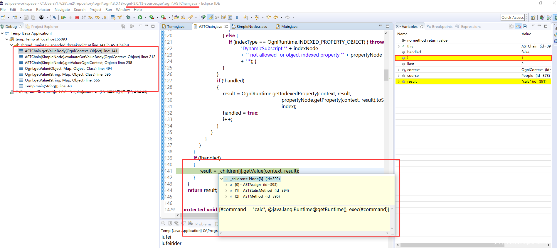 ASTChain.getValueBody(OgnlContext, Object) line: 141