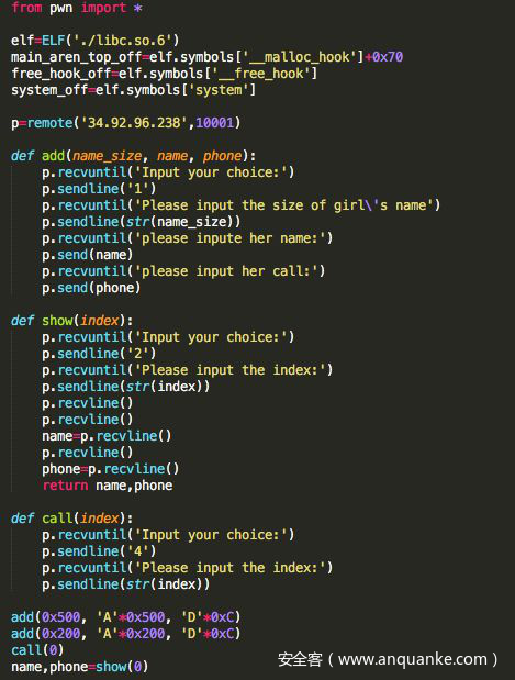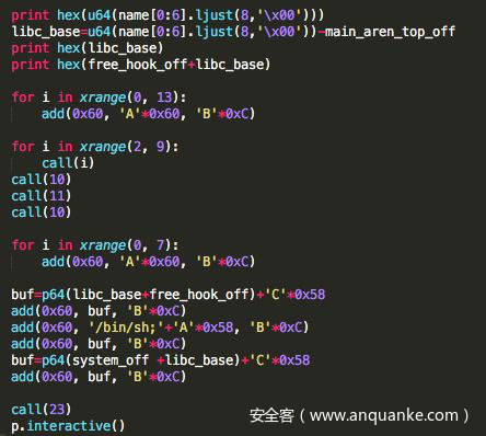 5.触发free(“/bin/sh;”)。