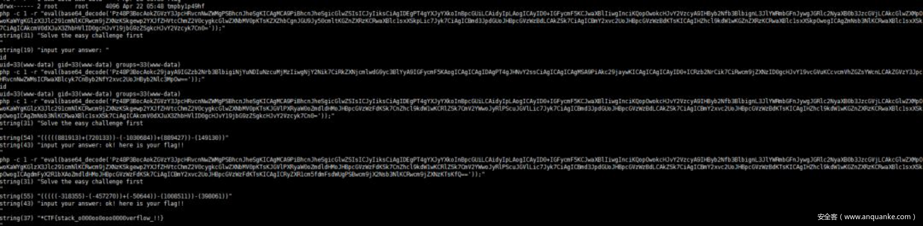但在本地测试数值是否正确时,提交几遍后才出flag。在赛题环境中手动提交一直失败,而且在重新跑过脚本后出来的结果又不同,怀疑为脚本问题,但本地提交多次都成功,可能为最后随机数的问题,最终以一个PHP脚本提交答案。