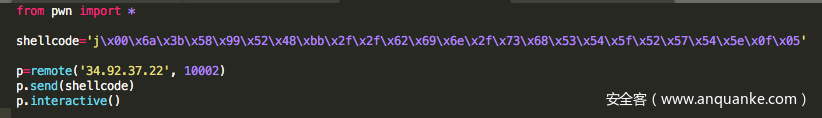 本题没有提供程序,给了服务器和端口,没有aslr和栈保护。