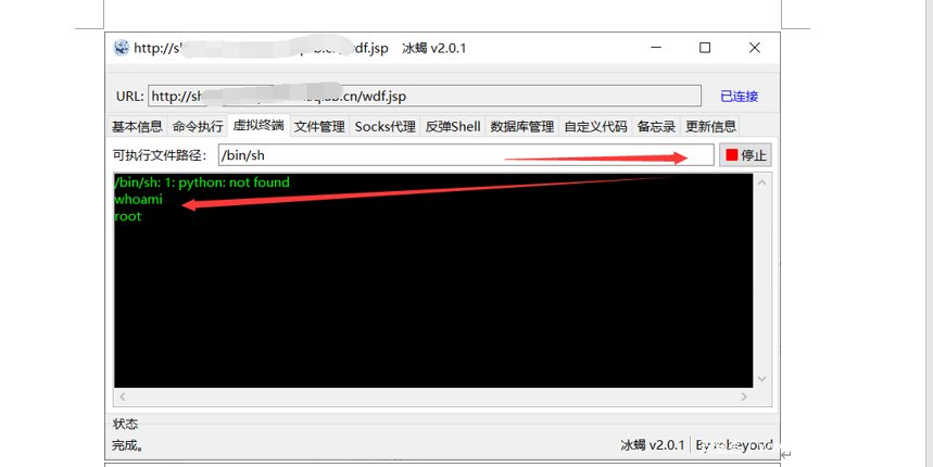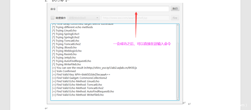 上边的框从灰色变白色,即可以输入命令的时候,代表攻击成功。