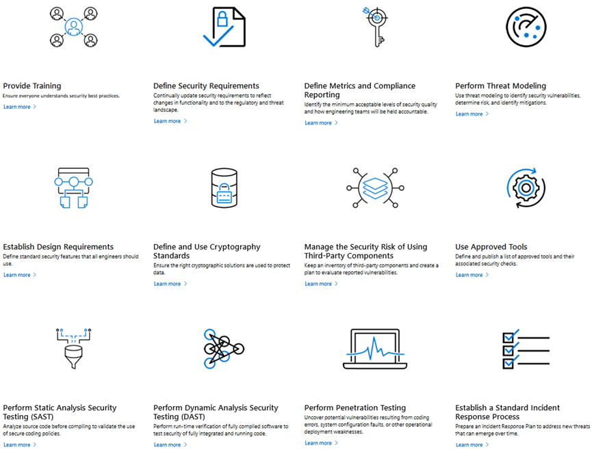 2019年,随着移动、云计算、大数据、物联网、人工智能和其他新技术的兴起,微软对SDL进行调整,使得无论使用经典的瀑布法或更新的敏捷方法(如DevSecOps),在开发的每个阶段提高软件应用程序的安全性。其中,适用于瀑布开发场景的SDL包括12个安全开发实践,适用于敏捷开发场景的SDL包括8个安全开发实践。