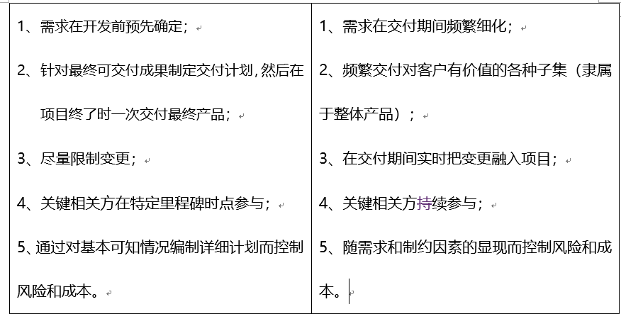 - 由于拥抱变化,增加了短期的灵活性,这样操作降低过程风险,则失去了对最终成本的预见性和可控性。