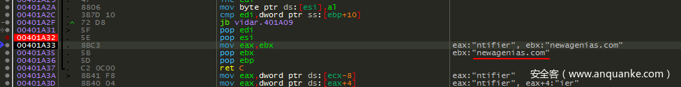 C2域名只是简单的进行了异或操作。只需要使用异或函数就可以解密出原始数据。