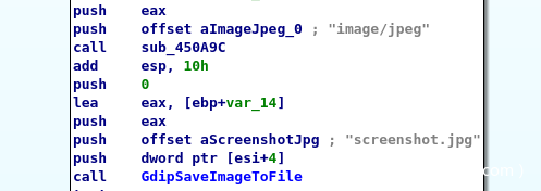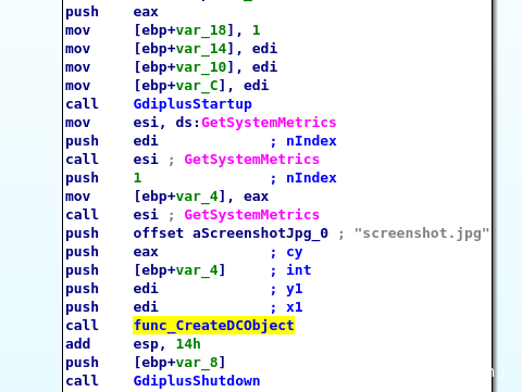 然后使用一个DC对象来创建生成图像所需的兼容位图,通过选择兼容memory DC并使用Bit Block API函数来完成数据传输。完成这些操作后,将进入func_GdipSaveImageToFile函数。