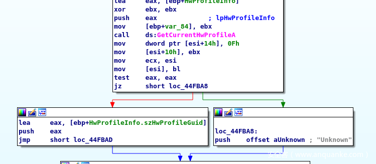 GetCurrentHwProfileA用于检索具有szHwProfileGuid值的计算机的当前硬件配置信息。如果执行失败,它将返回“Unknown”。