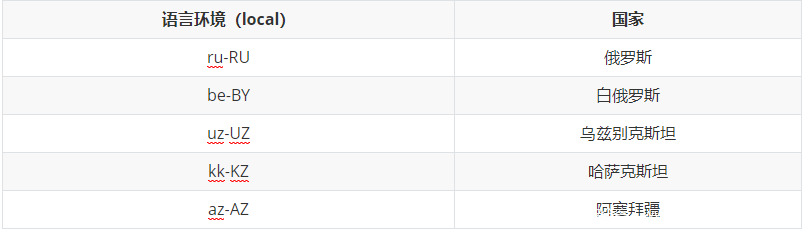 正如MSDN所声明的,“local”中以集合的方式展示用户的语言偏好。窃密软件将检查被入侵主机的是否设置为以下语言:
