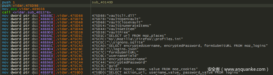 当Vidar执行main函数时,会先驻存一些必要的字符串,以便后续步骤的正常进行。