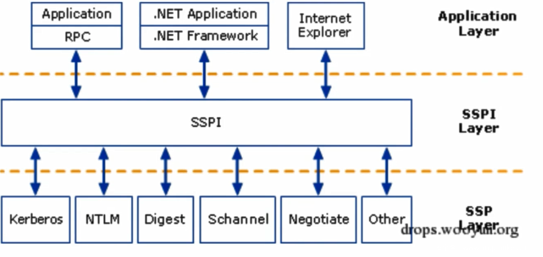 SSP在用户登录时被调用,并接收该用户的凭据。在系统启动时SSP会被加载到进程lsass.exe中。