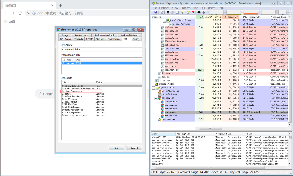 在完成了内核提权exp后,接下来需要考虑如何结合Chrome渲染进程的漏洞实现沙箱逃逸。首先可以考虑将内核提权exp以dll的形式编译,然后加载到目标进程,执行提权操作。但是由于Chrome渲染进程运行在Untrusted权限,无法直接利用漏洞获取shellcode执行权限后注入提权dll,需要考虑其他方法。