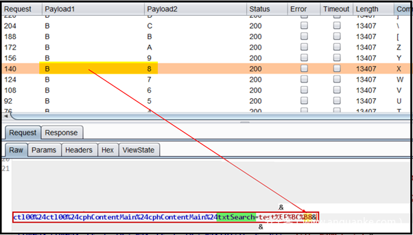 此外,还可以根据应用程序的行为从应用程序中枚举这些值,包括分隔符(如空格)以获得极大的准确性。编码后的payload可以直接提供给代理工具(如BurpSuite)进行拦截请求。