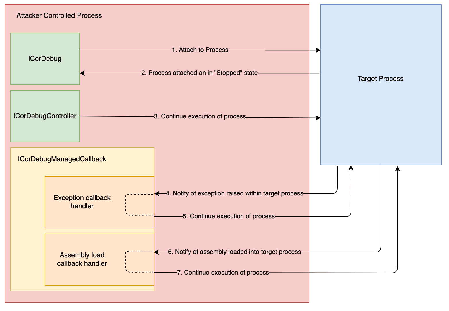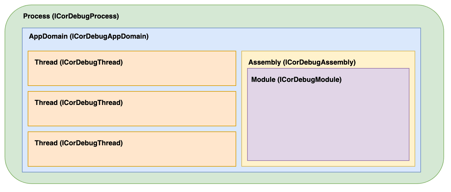 现在,在继续创建步进器之前,可以重点介绍.NET应用程序的组件可以如何映射到调试器API,这将有助于我们后续理解一些PoC代码。看上去,它类似于: