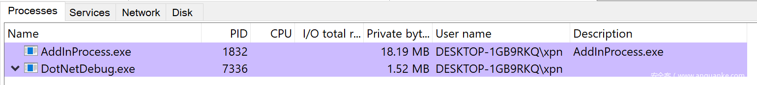 像是ProcessHacker这样的工具,还可以突出显示特定进程,以表示调试器会话的存在: