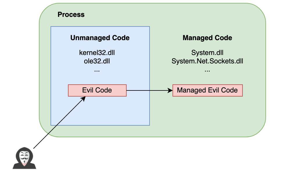 我们知道,像Cobalt Strike的execute-assembly这样的工具,极大地提高了从内存中加载.NET程序集的可访问性,大多数攻击者都会以各种各样的方式去使用它。考虑到这种趋势,蓝队也逐渐擅长于寻找内存中遗留的痕迹。但是,作为攻击者,我们仍然发现目前在进程中启动.NET代码的方法都非常相似的问题,无论目标是托管进程还是非托管进程。举例来说,如果我们希望将托管代码注入到进程中,即使目标是已经加载了CLR的.NET进程,我们通常也会采用以下路径: