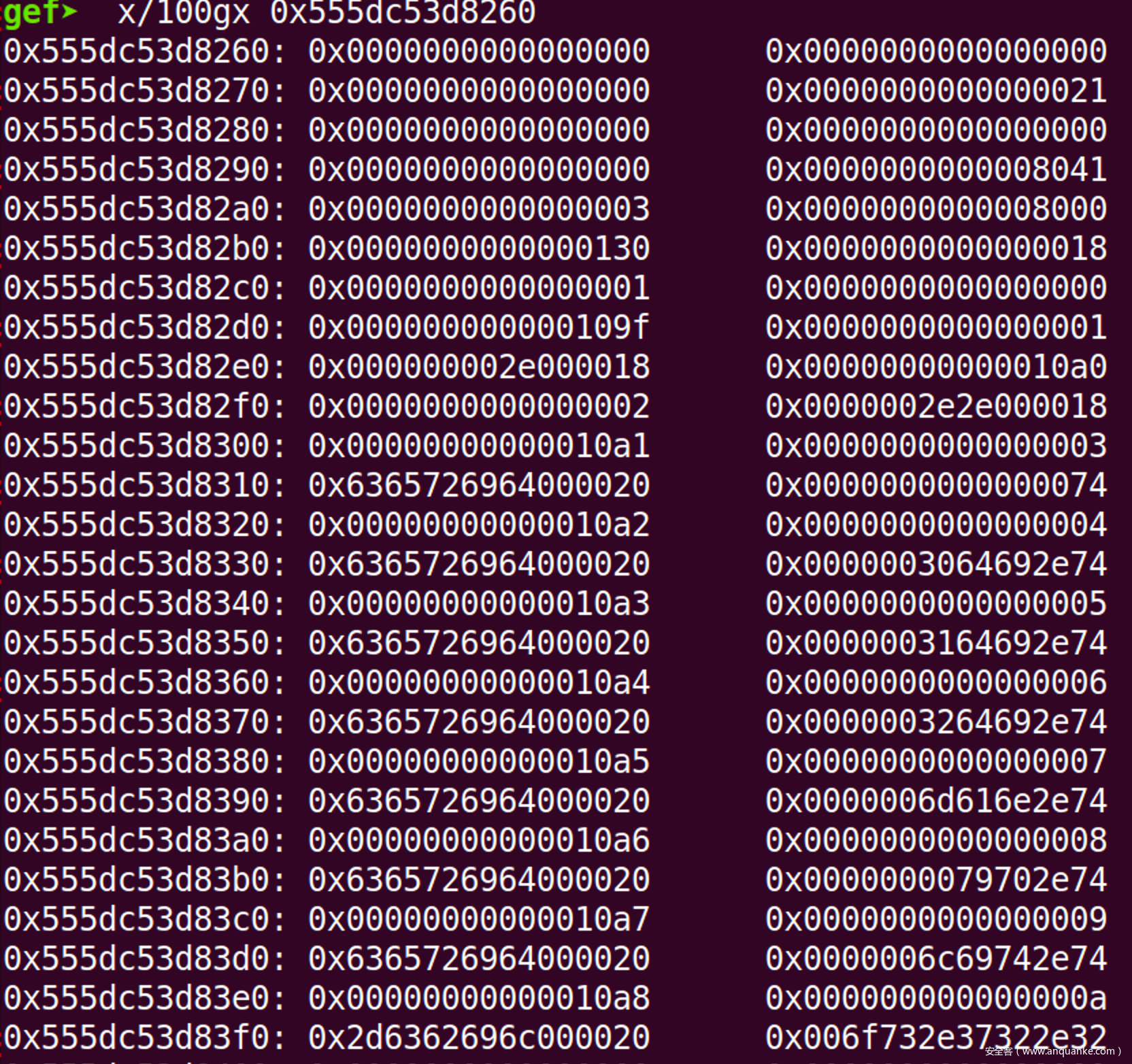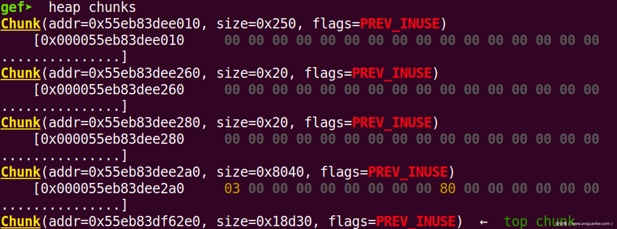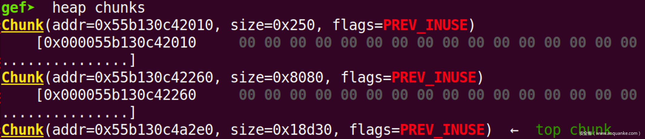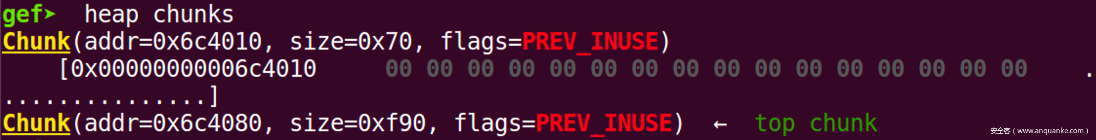 chunk的前0x10个字节。 - 打印指定