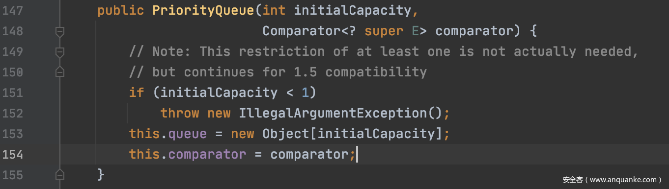 比较器的赋值是在PriorityQueue的构造方法中进行的,所以这部分可控