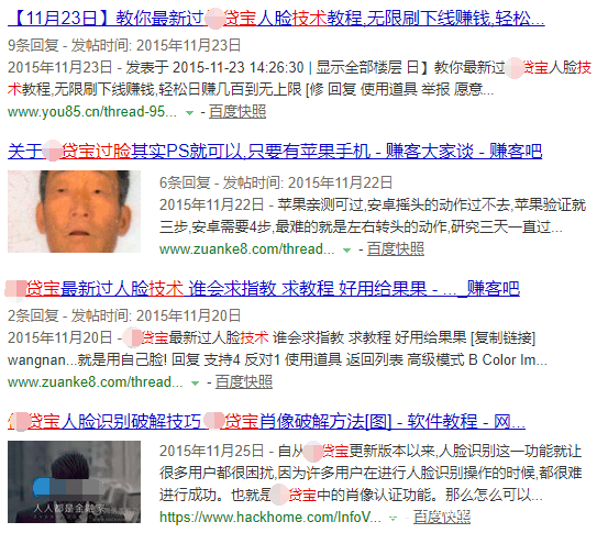 最初的过脸技术,被应用在某贷宝上。在某贷宝的移动App产品推广期间,推荐一个新用户注册,并实名认证成功,即可获得20元人民币的推荐奖励金。其中的实名认证包含了最新的肖像认证环节,即人脸识别。于是就有大量的投机分子将过脸技术应用在此,获取不义之财。