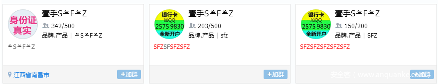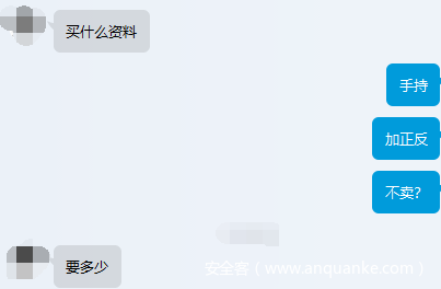 要完成人脸认证,首先得完成实名认证,而实名认证是需要真实的身份证信息的。那么依托过脸产业牟利的这群人是如何获得身份证信息的呢?经过猎人君多方查探,发现在浩瀚的网络世界中,存在着这么一群人,将从各种渠道获取到的公民身份证信息(包括手持照和正反照)以每份5-10元的价格出售。