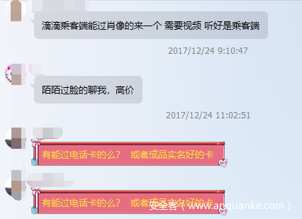 这些过脸技术人员一般在QQ群发布业务或者等待业务上门,猎人君在相关QQ群长时间的潜伏,以购买人脸认证业务的名义打探到,目前过脸需求主要集中在今日头条头条号的实名认证、滴滴乘客的实名认证、手机卡的实名认证、58同城账号实名认证等等。过脸业务只需要你提供需要实名认证的账号和钱,后续的一切都能帮你完成。