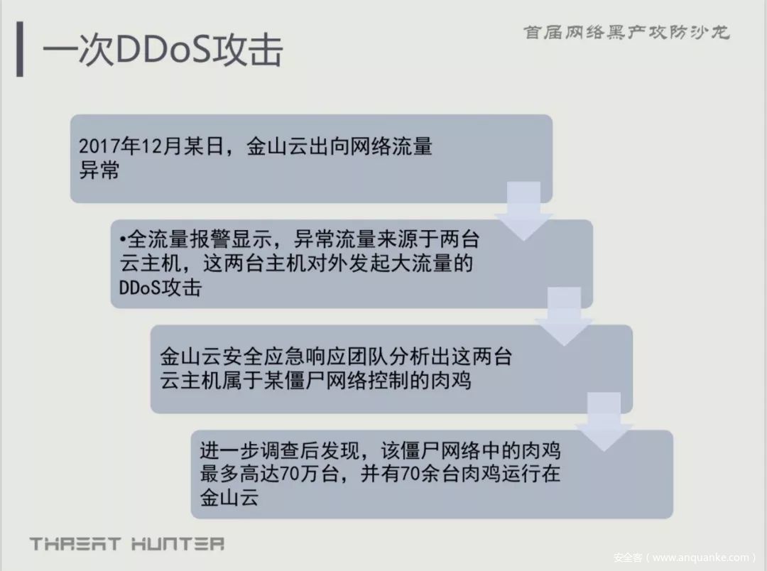 本文为威胁猎人首届网络黑产攻防沙龙嘉宾——金山云安全技术总监李鸣雷带来的现场分享。他将从一个僵尸网络的发现说起,分析云时代僵尸网络的新特点,并总结在云时代云服务商抵御黑产攻击的方式。