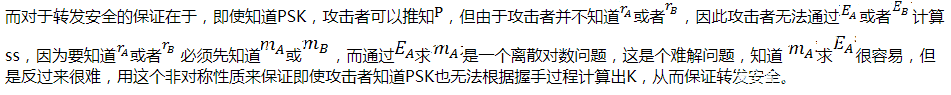 从以上密钥交换算法的细节可以看出,对于同样知道PSK的攻击者来说,这种算法也存在D-H密钥交换算法的毛病,就是无法防止中间人攻击!不过考虑到无线信道想要完成中间人劫持并不容易,所以这样考虑也尚且合情合理,不过话说回来,WiFi网络里中间人攻击并不是完全不可能的,只是实施有一定条件而已,因此在这一点上,我认为仍然重蹈了WPA2中“只能保证PSK不泄露情况下安全”的覆辙。