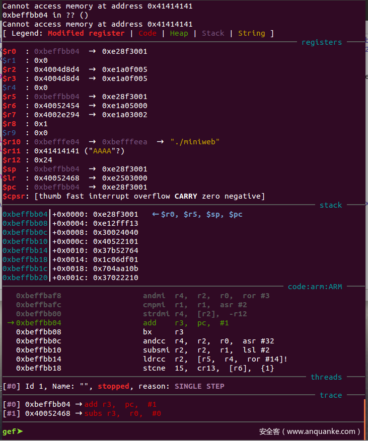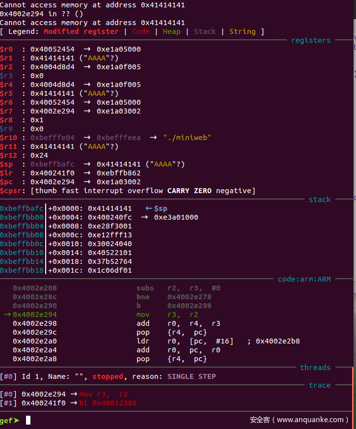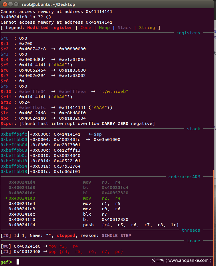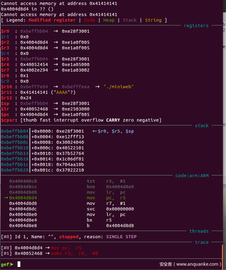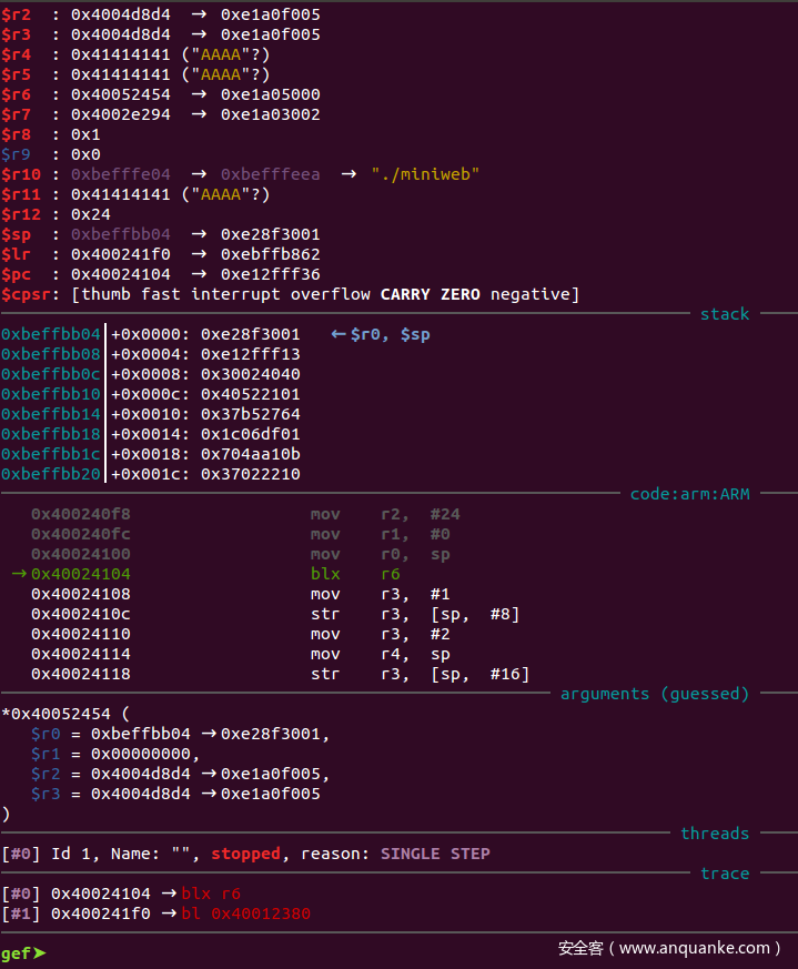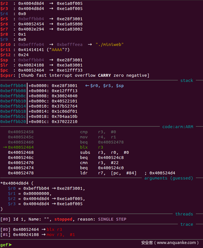 本文将步骤尽可能写的详细易懂,如果你也想自己动手完成这次实践,最起码需要掌握的是arm汇编(寄存器作用,指令含义,栈的相关操作,程序流程控制,arm和thumb指令特性),IDA分析(F5, 阅读c代码)。
