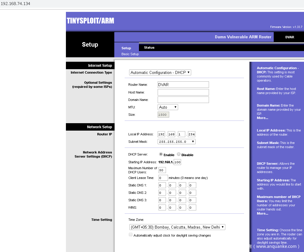 主页:https://www.vulnhub.com/entry/damn-vulnerable-arm-router-dvar-tinysploitarm,224/